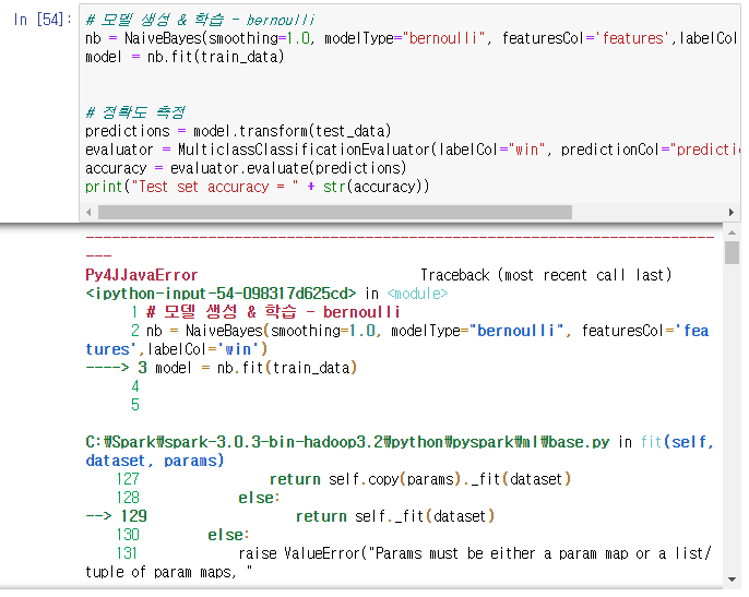 nb = NaiveBayes(smoothing=1.0, modelType="multinomial", featuresCol='features',labelCol='win')